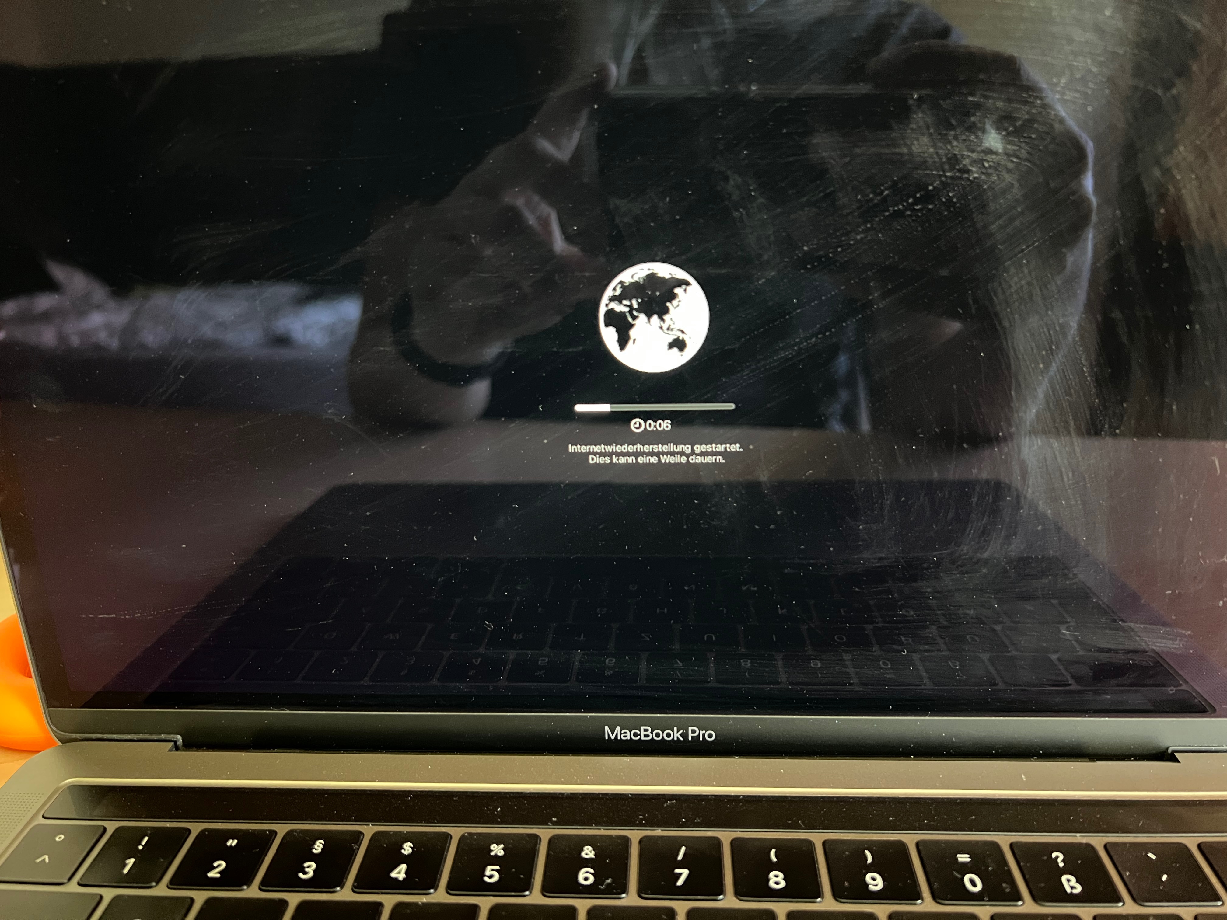ich habe bei meinem MacBook Pro 2019 das Problem, dass es MacOS einfach nicht wieder herstellt. Sobald der Balken voll oder fast voll ist wird der Bildschirm schwarz und es zeigt das Bild mit dem Ausrufezeichen auf der Weltkugel an, jedoch mit unterschiedlichen Nummer drunter.