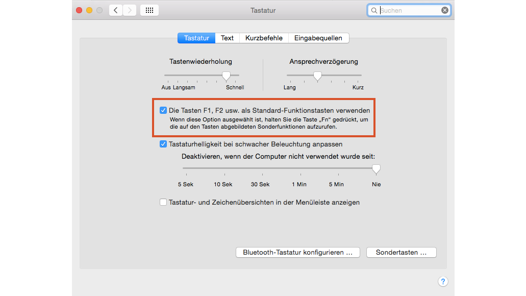 meine Tastatur für MacOS High Sierra Die Tasten F1 und F2 für Helligkeit regulieren funktionieren nicht. Was kann ich machen?