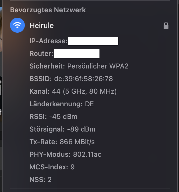Sämtliche anderen Geräte im Wlan haben dieses Problem nicht, dazu gehören iPad Pro, iPad Mini, iPhone 12, zwei AppleTVs und drei HomePods. Sie alle bleiben permanent online, während das Problem beim MacBook 14" auftritt. Auch mein altes MacBook Pro hatte dieses Problem nicht.