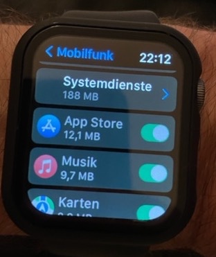 Auf der Apple Watch unter "Einstellungen --> Mobilfunk --> Nutzung mobiler Daten" ist der Schiebeschalter bei "Musik" allerdings auf Grün / Aktiviert gesetzt (siehe Photo). Es sollte also alles korrekt sein. Allerdings sind in diesem Menü alle Schiebeschalter für mich nicht veränderbar - ich kann daher zu Testzwecken nicht aus- und wieder einschalten.