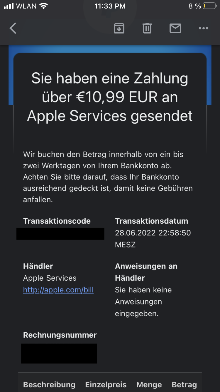 Warum kriege ich eine Rechnung von iTunes von 10,99€ obwohl ich noch nie iTunes benutzt habe