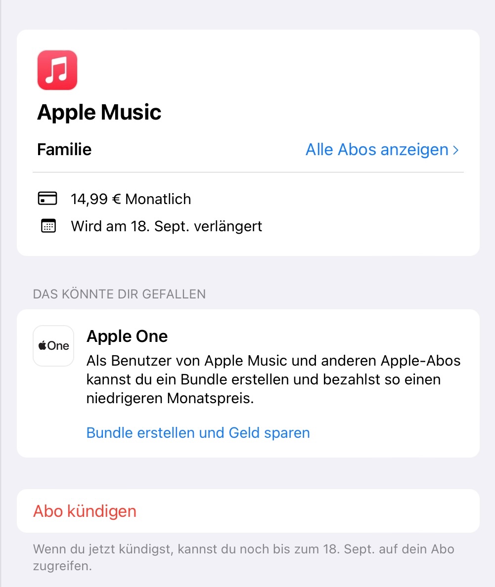 Liebe Community, meine Frage bezieht sich auf ein Angebot seitens Apple Music und Apple One.