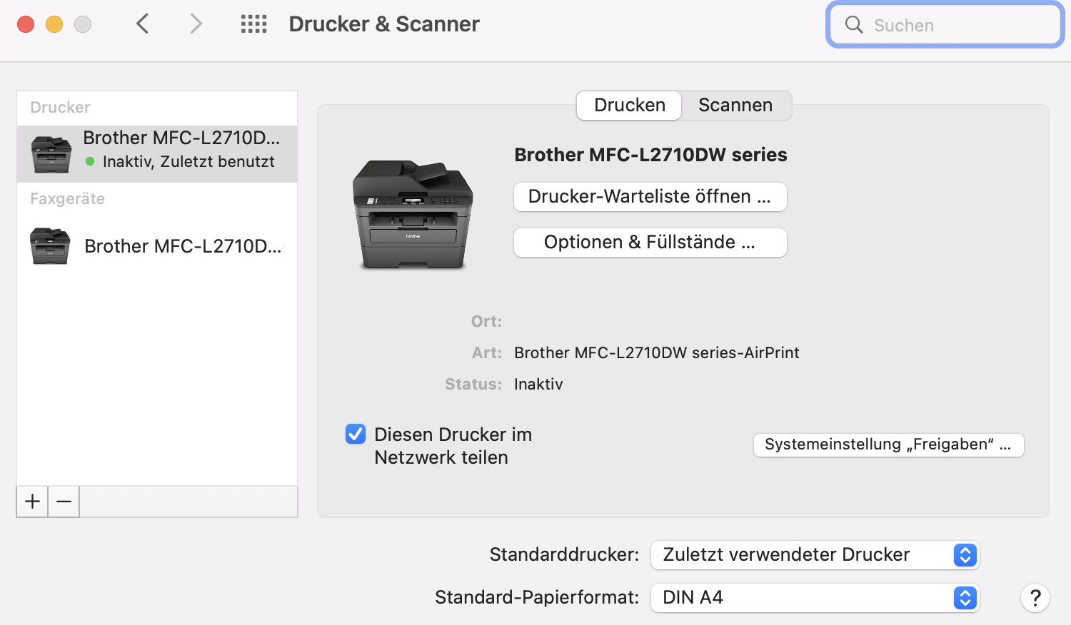 Habe seit 2 Wochen einen neuen iMac , bisher hat alles gut funktioniert. Seit heute ist das Druckersymbol für meinen Drucker brother mfc 2710dw verschwunden, sodass ich nichts mehr scannen kann. Unter Einstellungen Drucker finde ich ihn gelistet, ich habe ihn gelöscht und neu aufgespielt, aber das Druckersymbol bleibt unauffindbar. Drucken von Dokumenten geht über den Druckbefehl problemlos. Wer kann helfen???