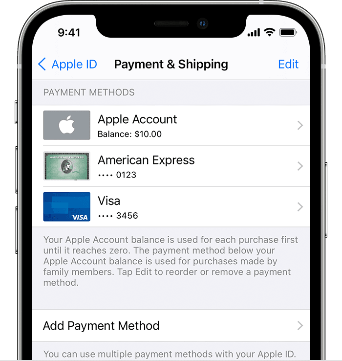 Grafik aus folgendem Link entnommen: Apple-ID-Zahlungsmethoden ändern, hinzufügen oder entfernen - Apple Support (DE)