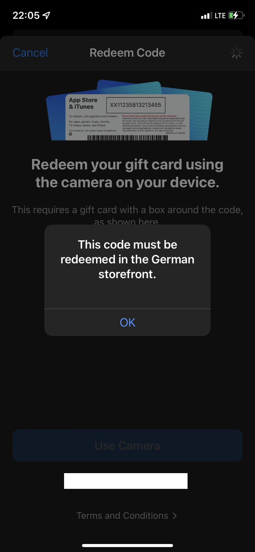Hello. I bought a card in a store and when I try to activate it I get this message “ This code must be redeemed in the German storefront.” Gift card not activated.