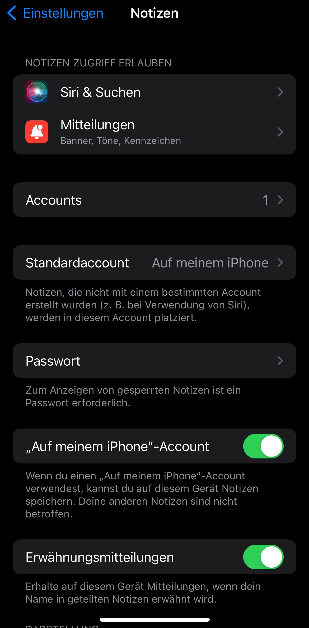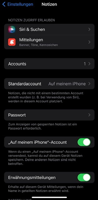 über Einstellungen wurde der Haken bei iCloud für Notizen gesetzt.