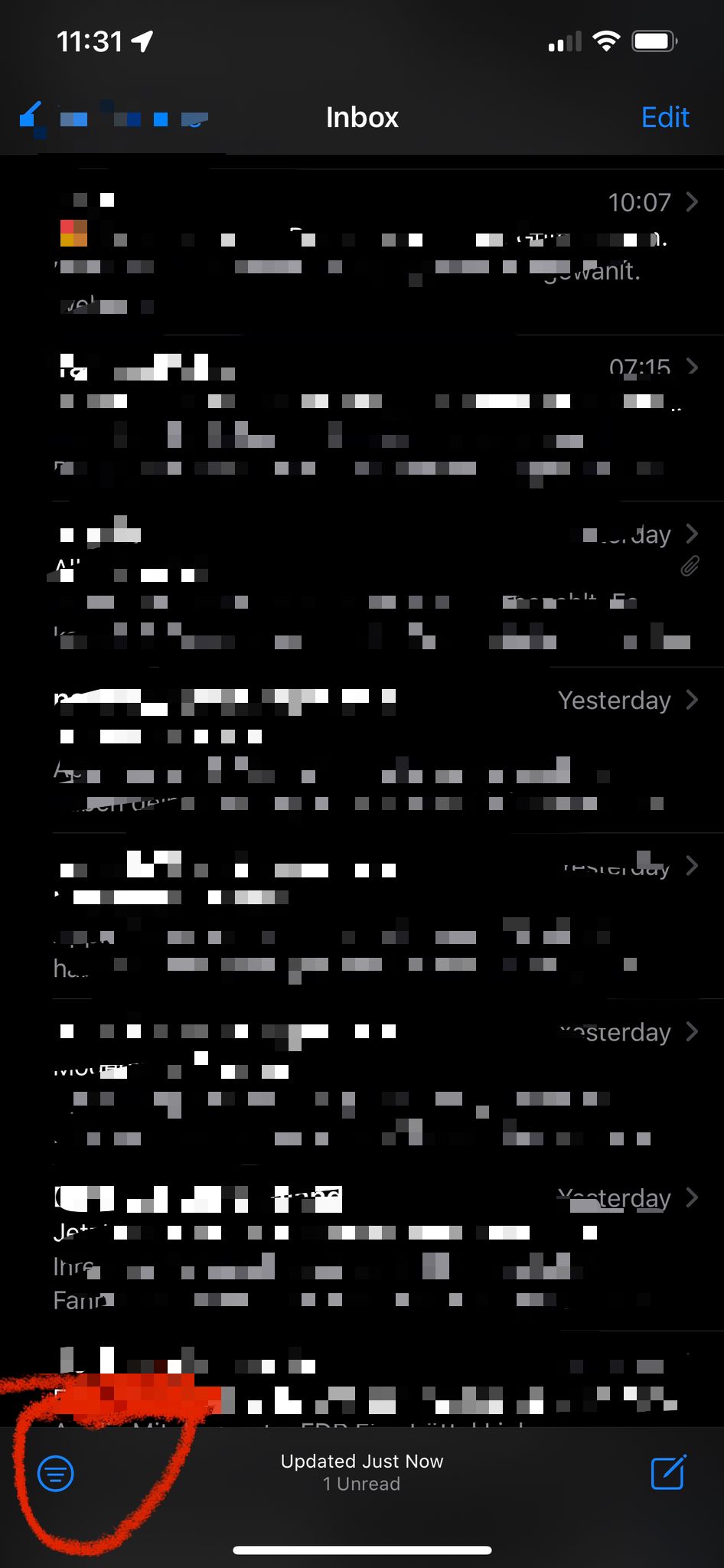 Durch den Kreis mit 3 Strichen kannst du nach "ungelesen" filtern. Auf iOS und MacOS