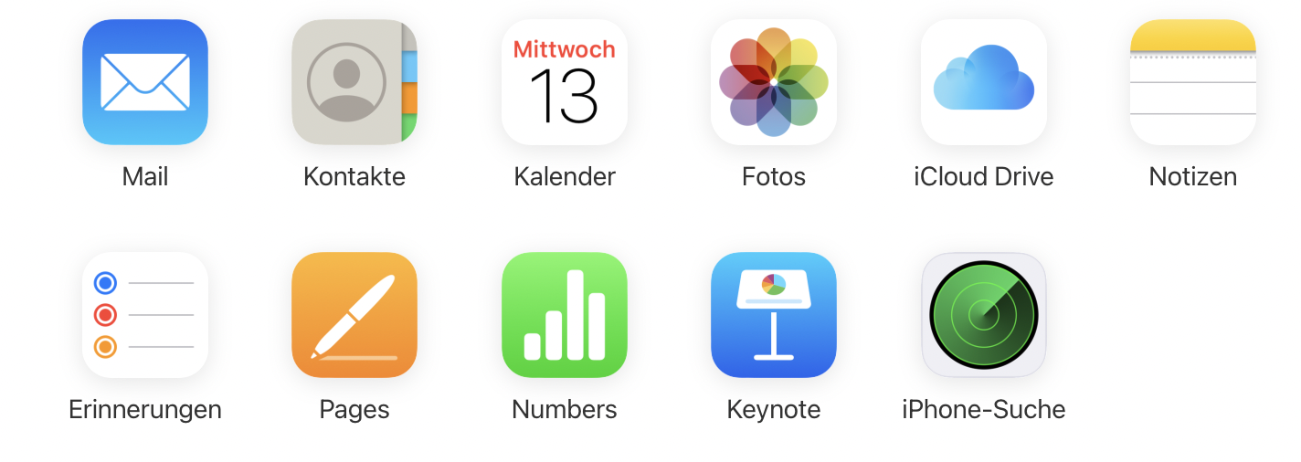 Danke Artischocke . Ich sehe Mail,Kalender,Fotos,iCloud Drive und Notizen.