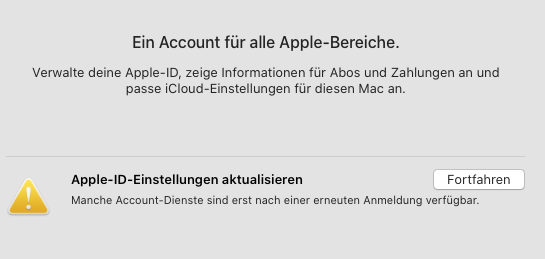 Alle gewünschten Dienste (CloudDrive, Notizen, Mails, Safari, Nachrichten, AppStore, usw.) können benutzt werden und werden auch synchronisiert. Auch liegen alle Nutzerdaten und Passwörter der Apple-ID vor. Ich kann mich auch auf www.icloud.com einloggen. Nur taucht ständig diese Fehlermeldung in der Systemsteuerung auf: