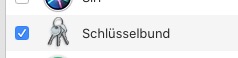 [edit]: Unmittelbar nach Neuinstallation konnte ich am Mac das Häkchen beim Schlüsselbund setzen und war blau unterlegt. Seit der Fehlermeldung kann ich den Haken nicht mehr setzen.