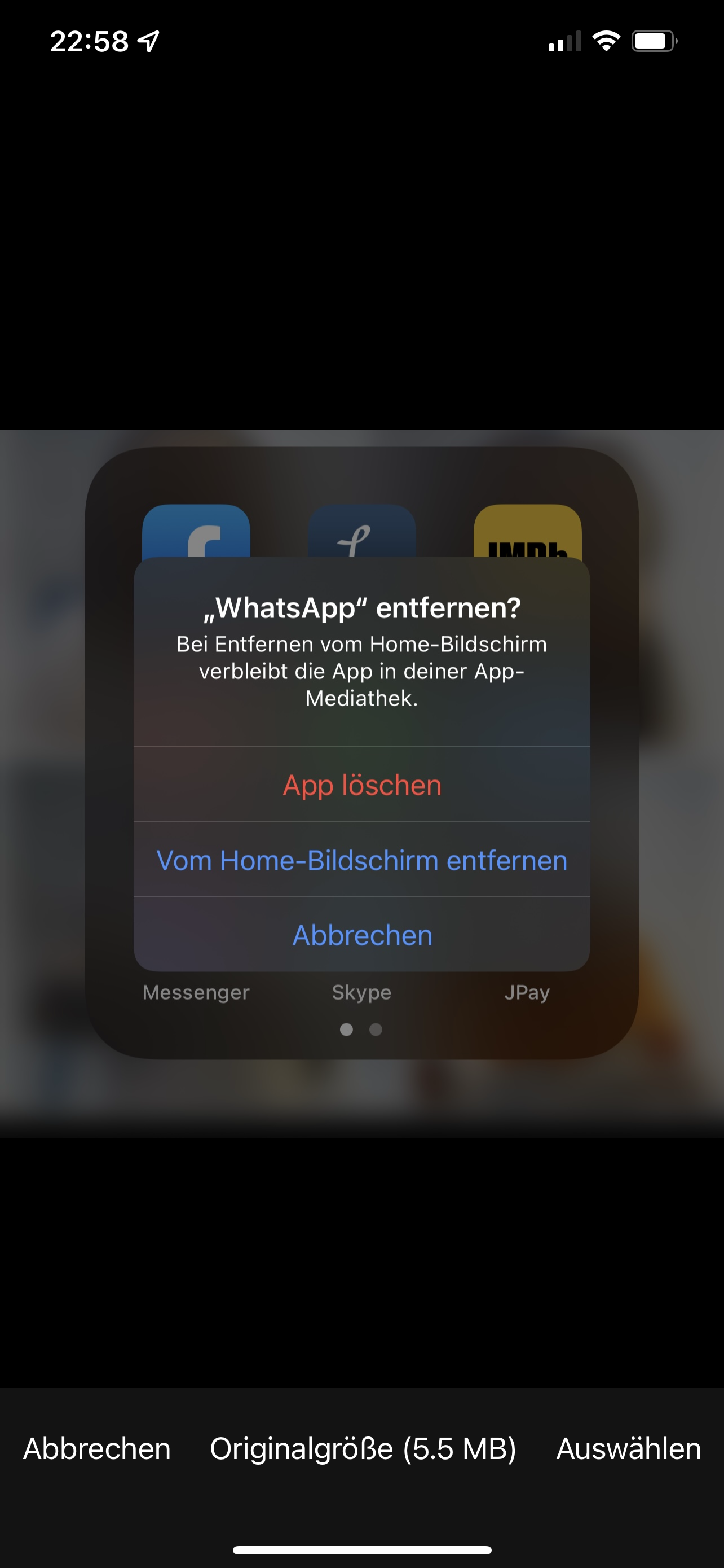 Hallo, ich kann mein Whatsup nicht vom iphone 13 deinstalieren, wenn ich lange auf das Logo drück kommt wohl rot App entfernen aber wenn ich draufdrücke kann ich dies nur vom Homebildschirm löschen. Hatt jemand eine Ahnung was ich falsch mache? Danke herzlich für die Hilfe