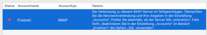 mein Mac Mail verbindet sich seit Juni nicht mehr mit freenet mail. Ich habe alle Einstellungen überprüft und finde keinen Fehler.