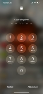 Nach einigen Sekunden wechselt die Ansicht von Bild 1 (Face ID) auf das Bild 2 (Code eingeben).