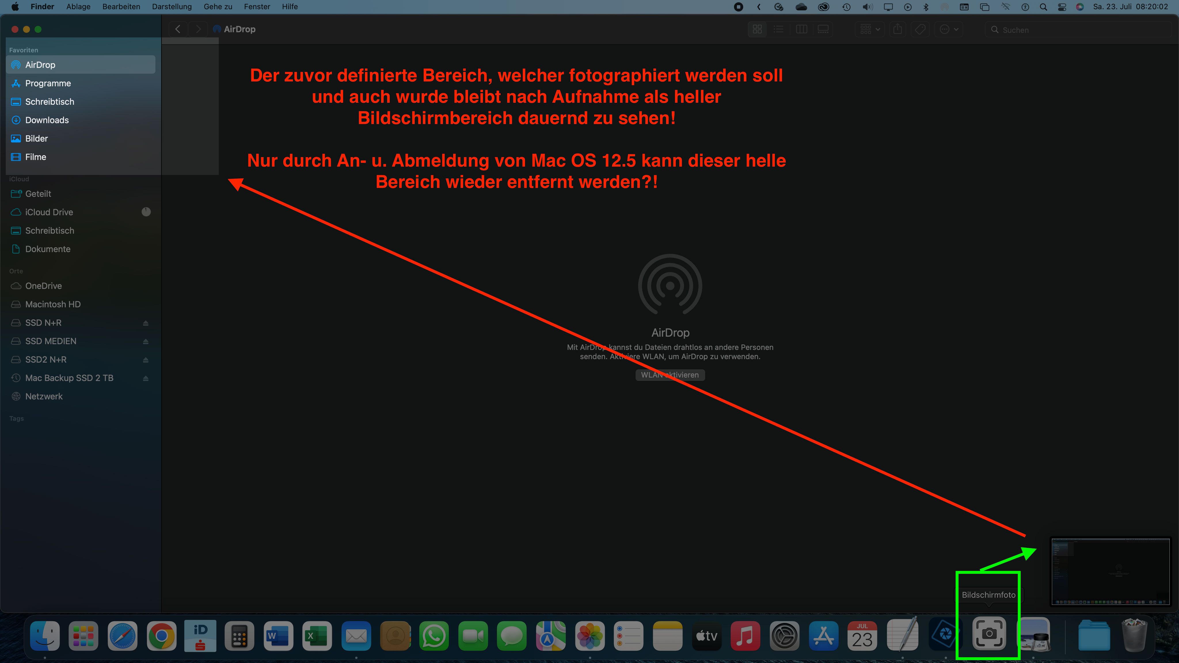 Einzige Möglichkeit, diesen hellen Bereich zu entfernen war nur möglich, mich von Mac OS 12.5 ab- u. wieder anzumelden?!