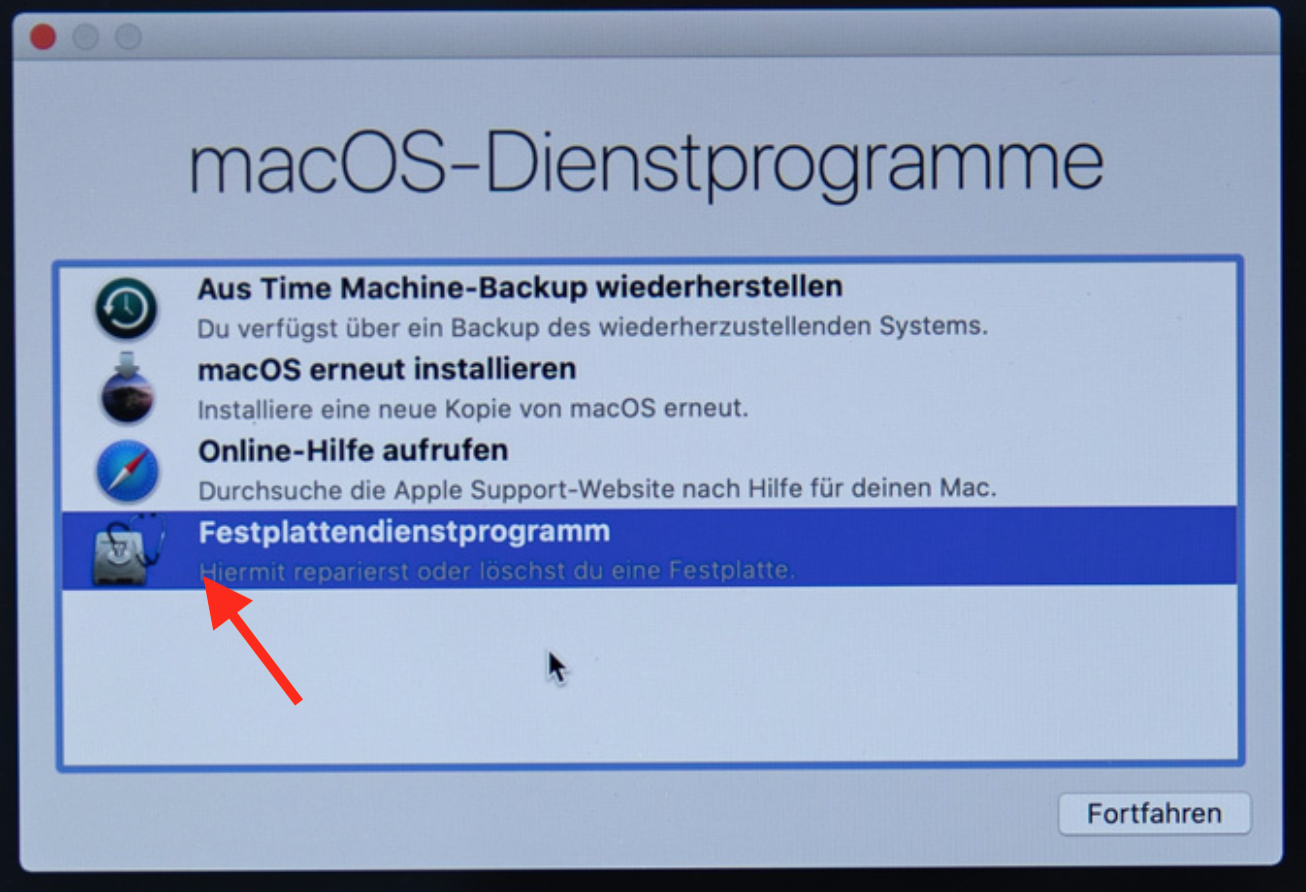 kannst du mit dem FPDP (markiert) die Festplatte mit "Erste Hilfe" überprüfen/reparieren wenn nötig, nach Beenden des FPDP