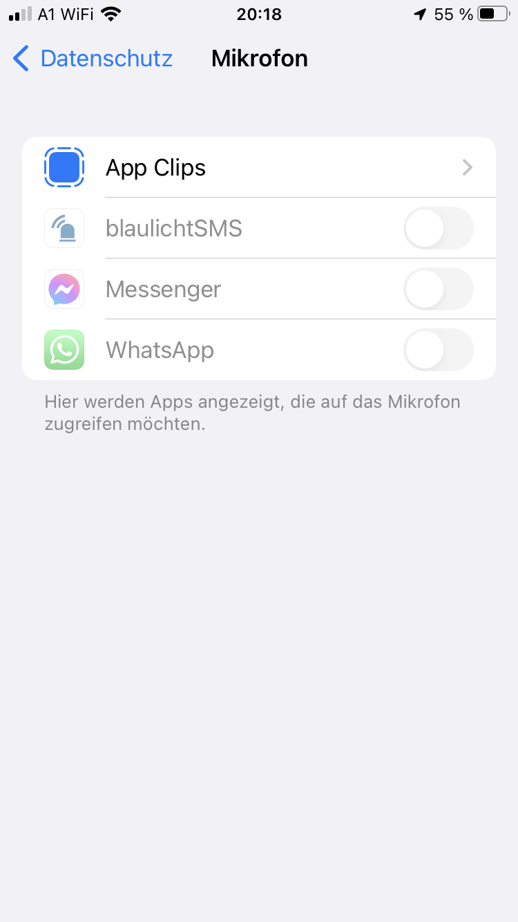 Hallo, ich interpretiere dein Bildschirmfoto so, dass du das Mikrofon in den Apps nicht freigegeben hast.