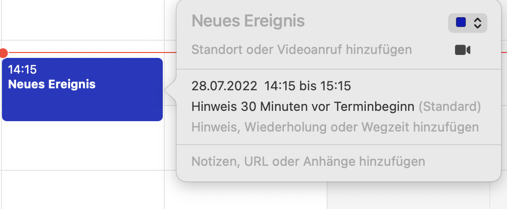 Beim Erstellen eines neuen Termins in der Kalender App auf dem MacBookPro wird keine Möglichkeit angezeigt jemanden einzuladen.