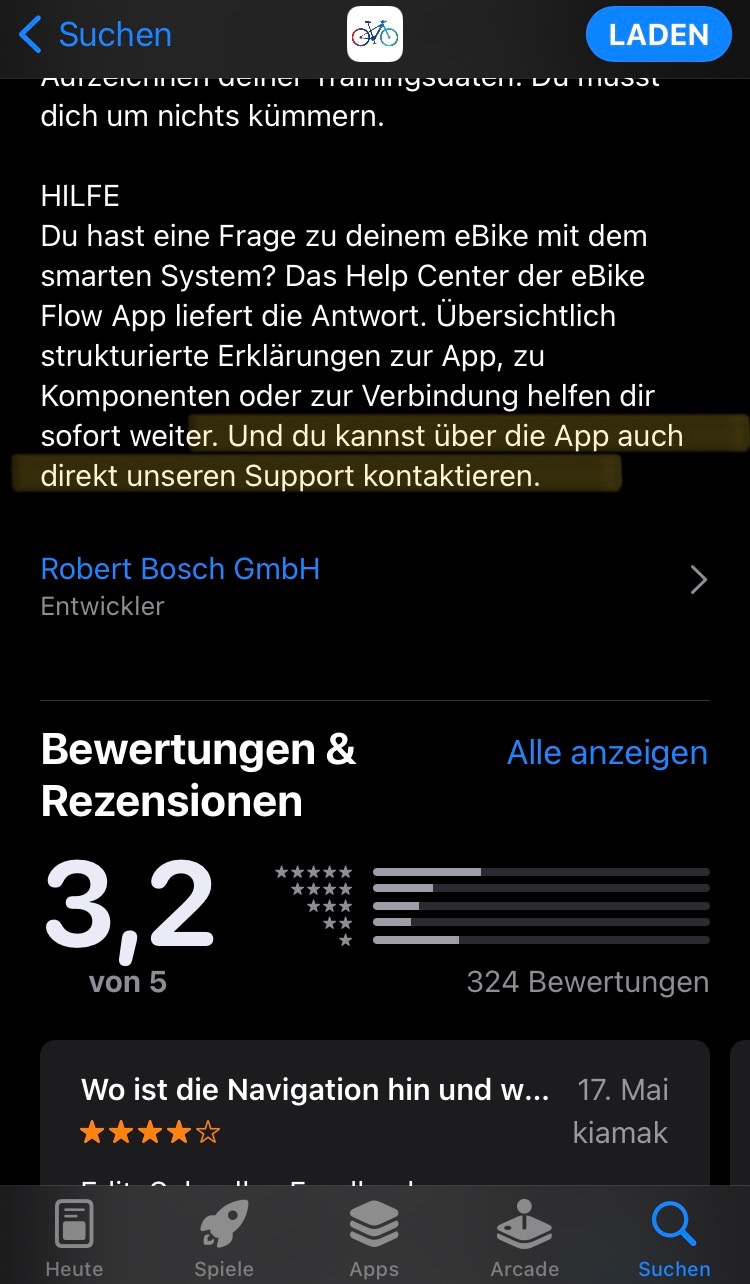 so ganz verstehe ich Dein Anliegen nicht. Die App von Bosch - gehört die zu einem e-bike? funktioniert nicht so wie Du denkst? Ist die aus dem app Store geladen? Wenn die da zu finden ist, würde ich die noch mal runterlöschen und dann aus dem app Store laden. viel Erfolg