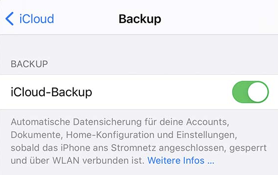 Beim Backup erscheint unter Datum „letztes Backup“ das Wort „nie“ statt einem Datum