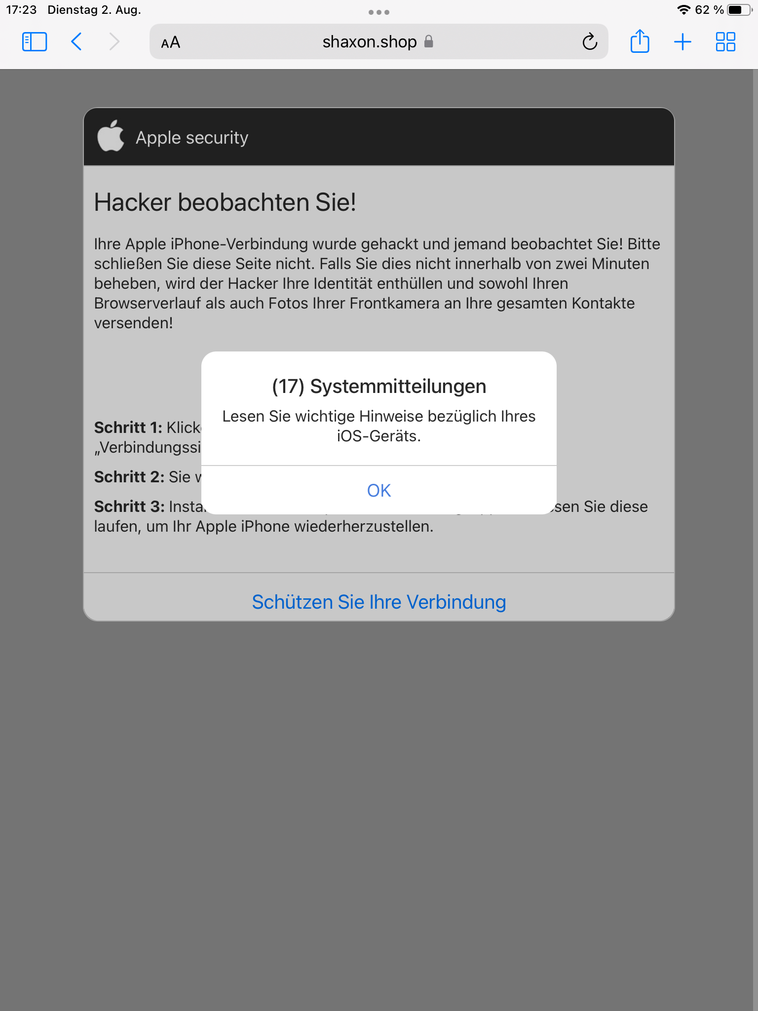 Hat jemand schon mal so eine Meldung beim Öffnen einer bestimmten Website erhalten? Nach Klick auf ok sollte eine App runter geladen werden. Hab ich nicht gemacht.