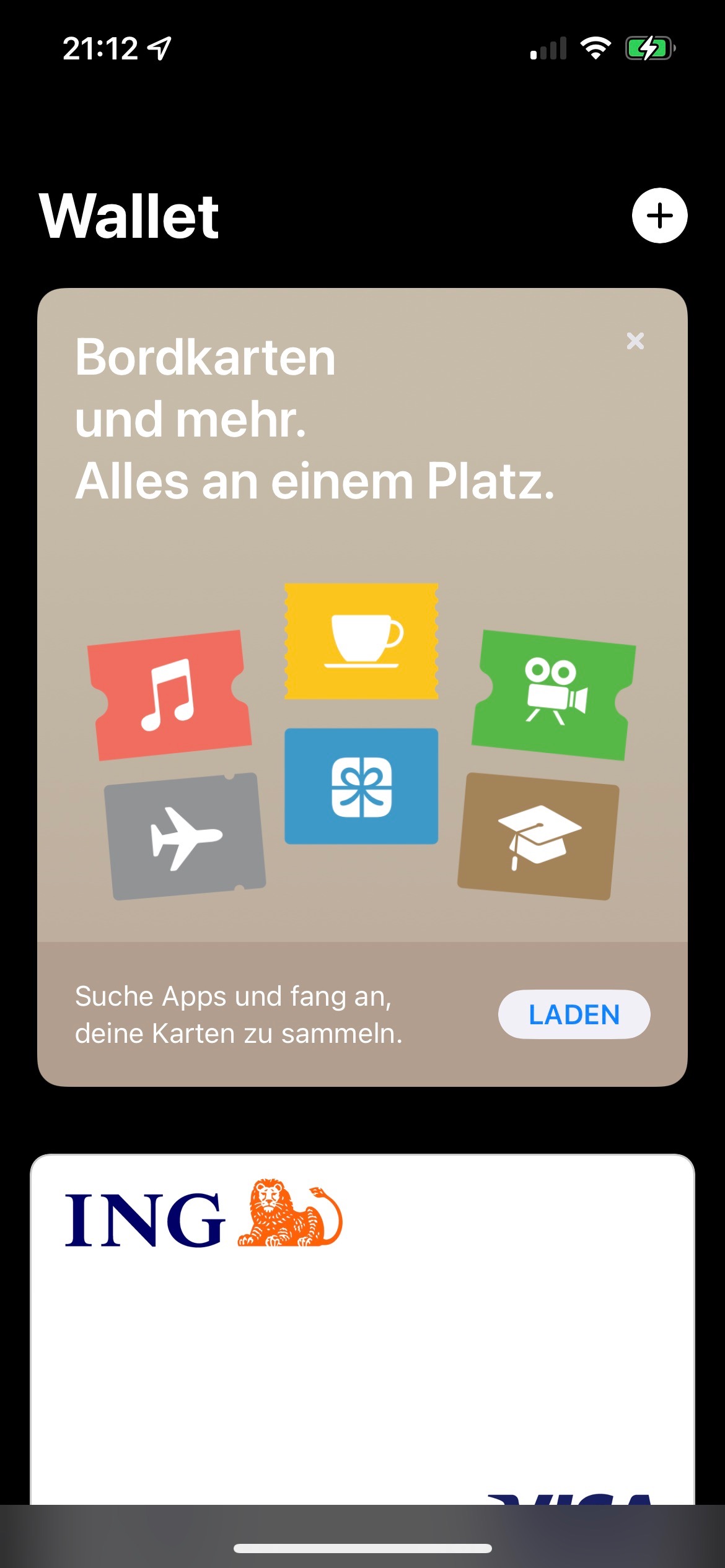 Ja, naja, so ganz stimmt das nicht. Ich habe eben noch mal bei meiner Frau nachgesehen, wo ich diese Kachel gesehen hatte, und weshalb ich überhaupt auf die Suche gegangen bin. Anbei ein Screenshot eines iPhone 13 mit aktuellem IOS 15.6. Sie hat weiterhin die Kachel und kann auch weiterhin "Code Scannen" und "Apps für Wallet suchen" (mit klick auf "LADEN"), obwohl sie eine Kreditkarte und auch Zoo Eintrittskarten hinterlegt hat.