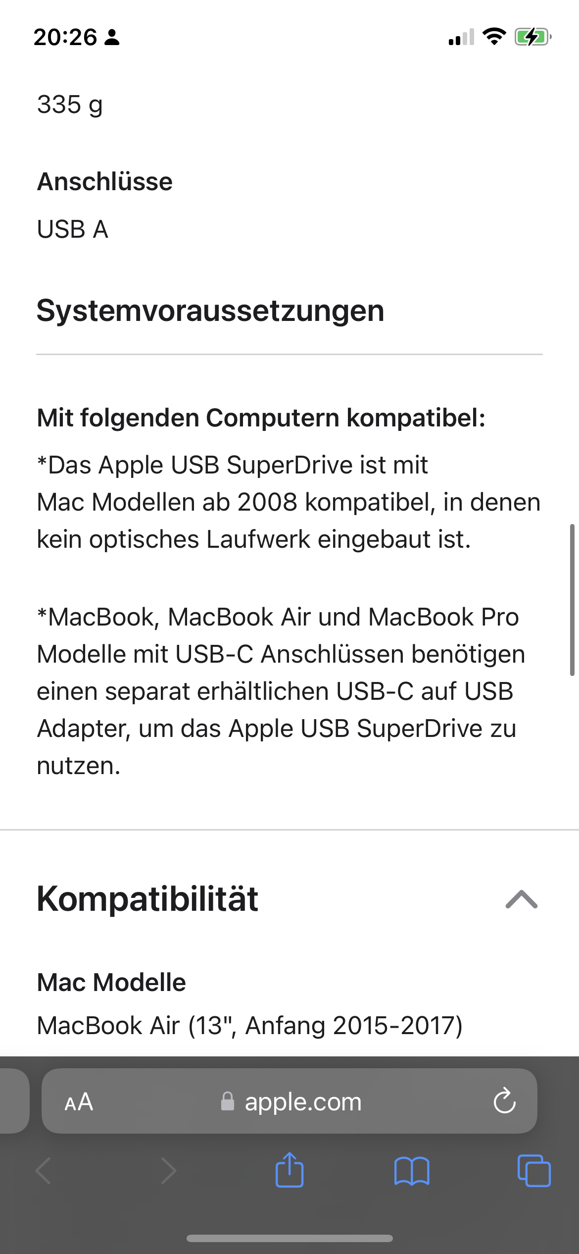 Edit: Es werden doch Mac Modelle ohne USB-A als kompatibel gekennzeichnet, aber warum sollte das Laufwerk mit einem Mac Studio und einem MacBook Pro 14“ kompatibel sein, aber nicht mit einem iMac 24“?