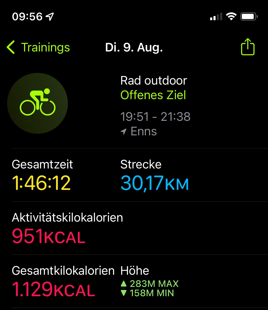 ich schaffe es einfach nicht in Apple Fitness die gefahrenen gesamten Höhenmeter eines Radtrainings anzuzeigen, stattdessen wird mir nur die Höhe (max / min) im jeweiligen Training angezeigt.