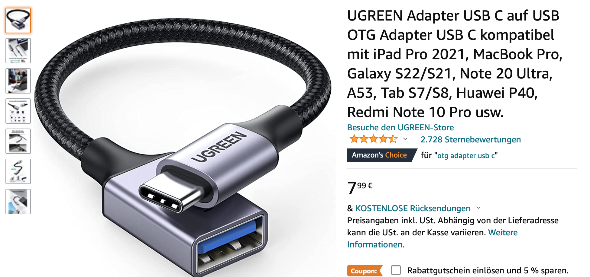 Starten mit einem USB-C auf USB-A- Adapter auf macOS 12 Monterey mit Apple Silicon Chip