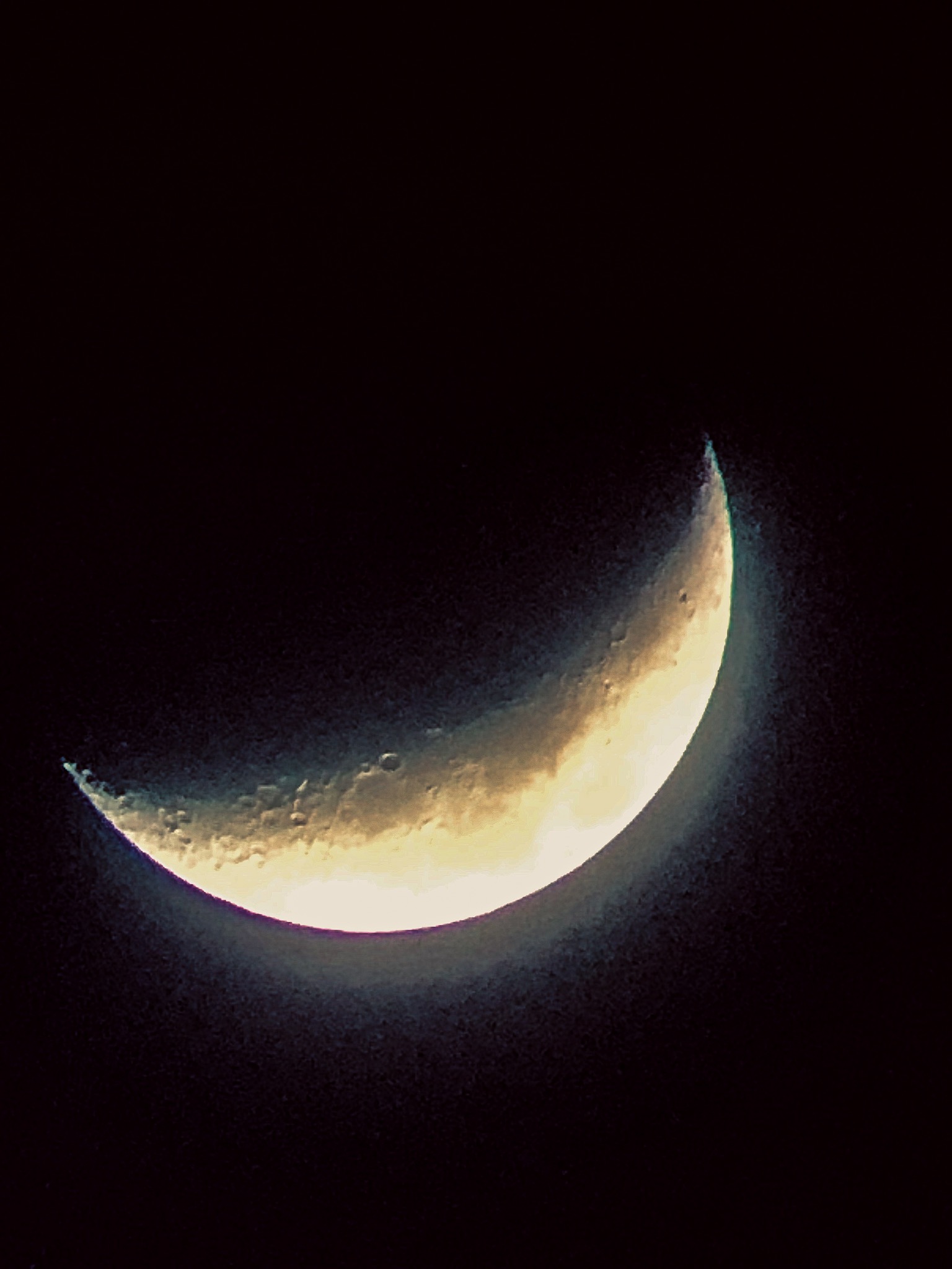 Das Foto ist Teil einer Serie. iPhone hinter das Okular des Teleskops montiert. Vergrößerung 30x. Ansonsten habe ich mich auf die Automatik des iPhone verlassen. Der Mond war fast bildfüllend. Finderspitzen und Geduld.