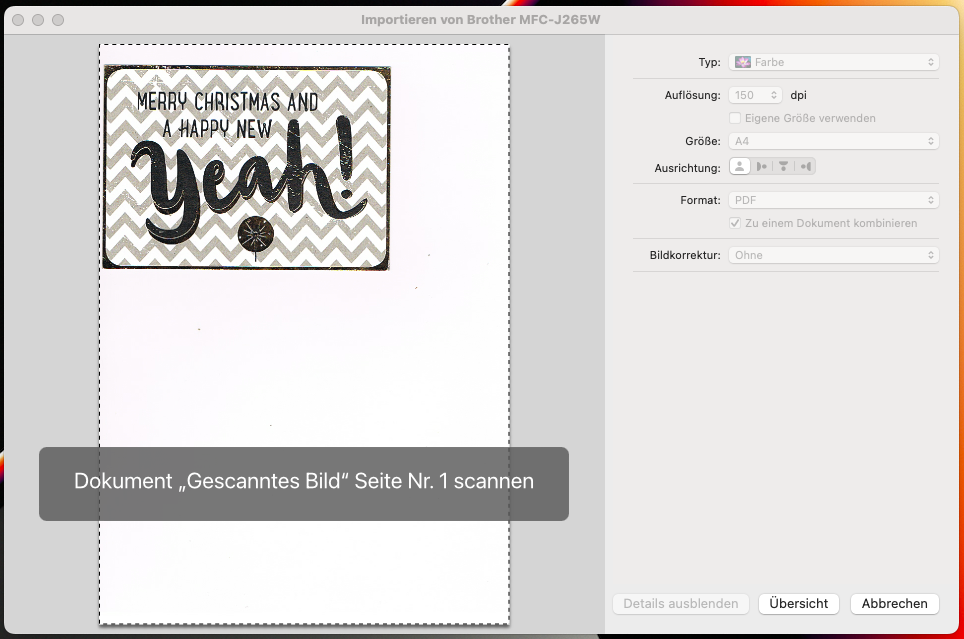 Und zwar habe ich einen treuen Brother Drucker/Scanner (MCF-J265W). Diesen nutze ich auch, um zum Beispiel meine Briefe zu Scannen. Verbunden über WLAN. Die Nutzung über das alte MacBook läuft ohne Probleme. Das Drucken auf dem neuen MacBook läuft ebenfalls ohne Probleme - diese kommen aber beim Scannen.