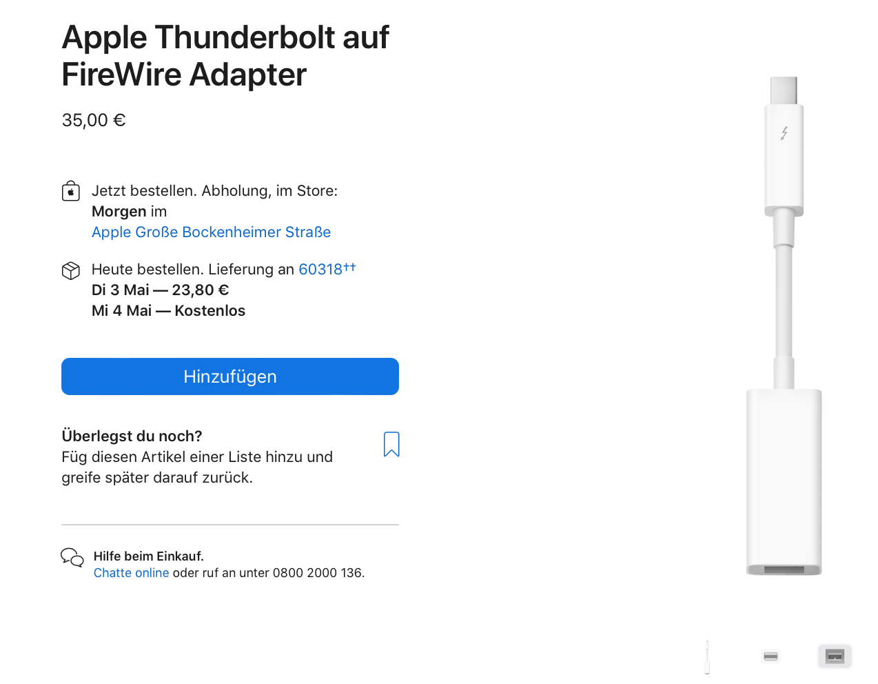 Gibt es einen Adapter FireWire 400 auf Thunderbold von meinem neuen iMac 24“ zu meiner Wester Digital My Book mit FireWire Anschluss