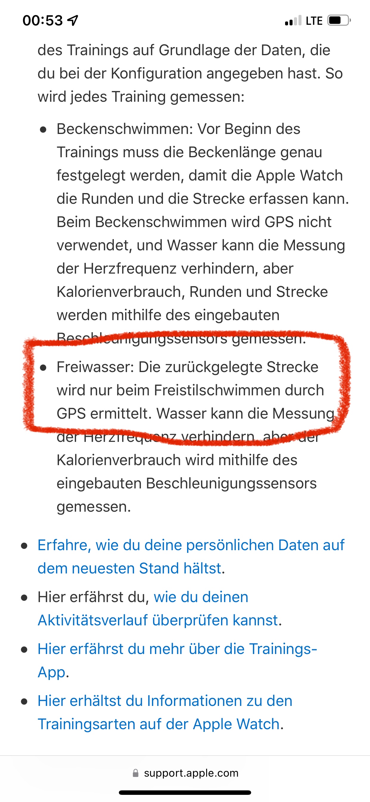 Hallo DanielMi, danke für die Antwort. Hab ich schon überprüft, ist aktiviert. Wenn ich den Artikel von Apple richtig interpretiere, funktioniert gps nur bei Freistil=Kraul? Schwimmen mit der Apple Watch - Apple Support (DE). Wobei eigentlich Freistil auch andere Schwimmstile enthalten sollte. Welcher Schwimmstil wird dann aber hier mit „nur“ ausgeschlossen?