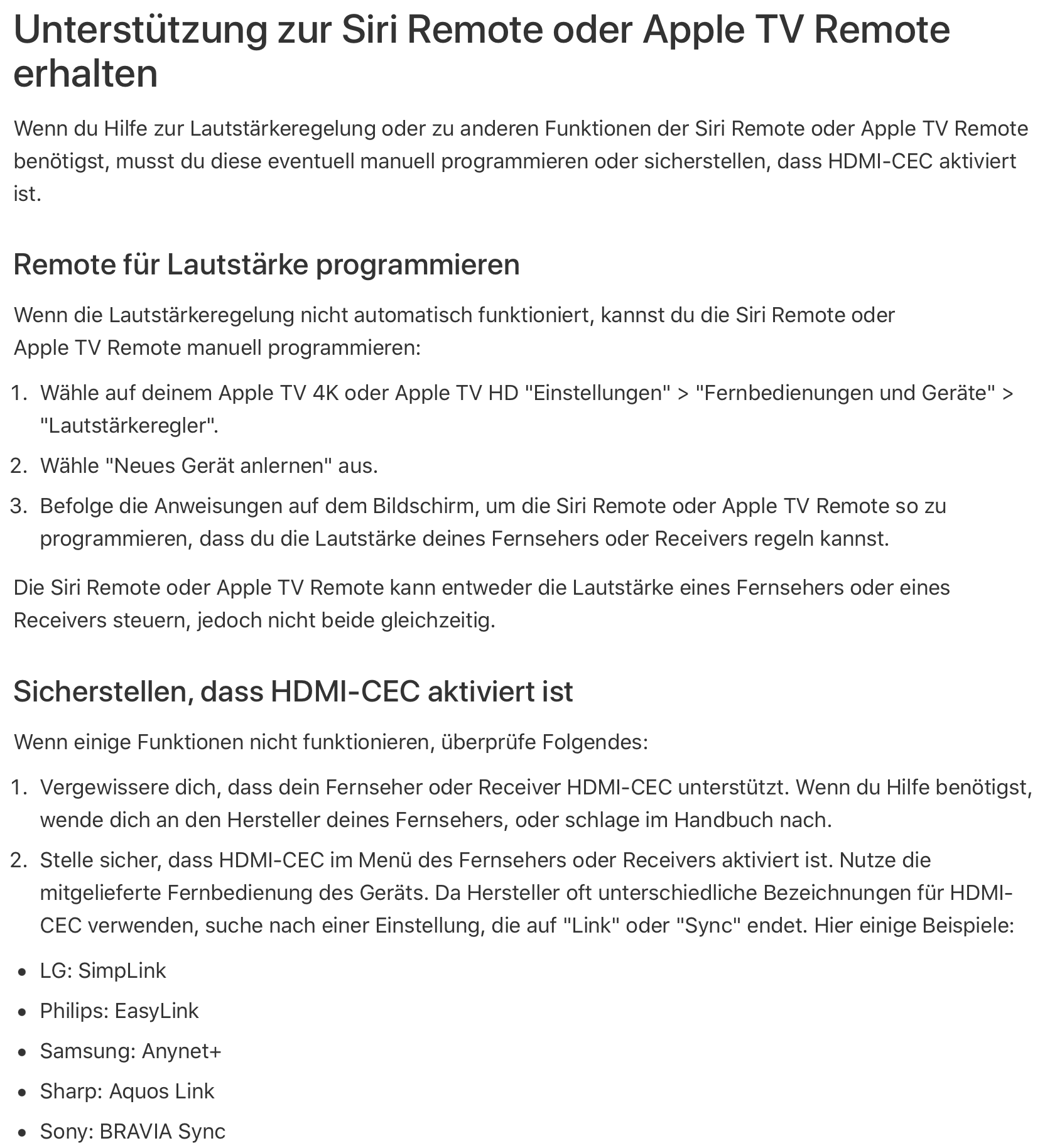 • Benutzt du eine Siri Remote oder Apple TV Remote? Wenn ja, bist du die unten genannten Schritte schon durchgegangen?