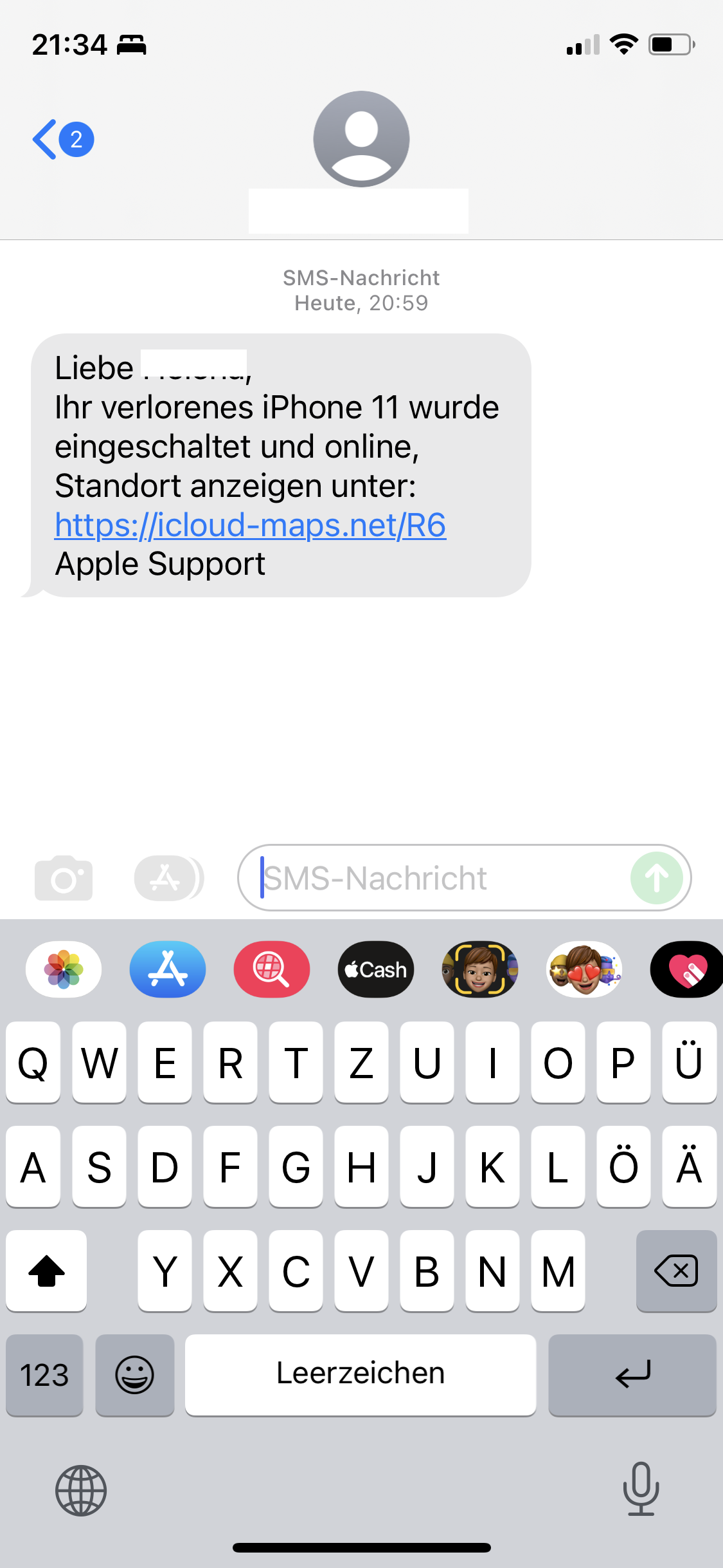 hallo zusammen, diese Nachricht habe ich heute erhalten. Ich habe im Juni in Tunesien mein Handy verloren/geklaut bekommen und es dann als verloren markiert. Ich konnte es eine Zeit lang orten, dann war es ausgeschaltet. Habe alle Empfehlungen von Apple durchgeführt. Löschen der Daten hat leider nicht geklappt. Ist die unten genannte Nachricht ein Fake oder wirklich vom Apple Support? Der Link funktioniert zumindest nicht. Dank Euch schon mal für eine Rückmeldung, ist mein erster Post 👼
