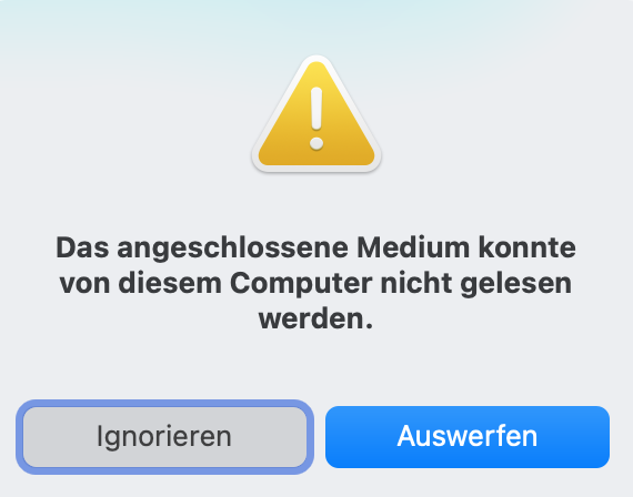 Folge davon: Beim Start des Systems heisst es, das Medium könne nicht gelesen werden*. Bild 1