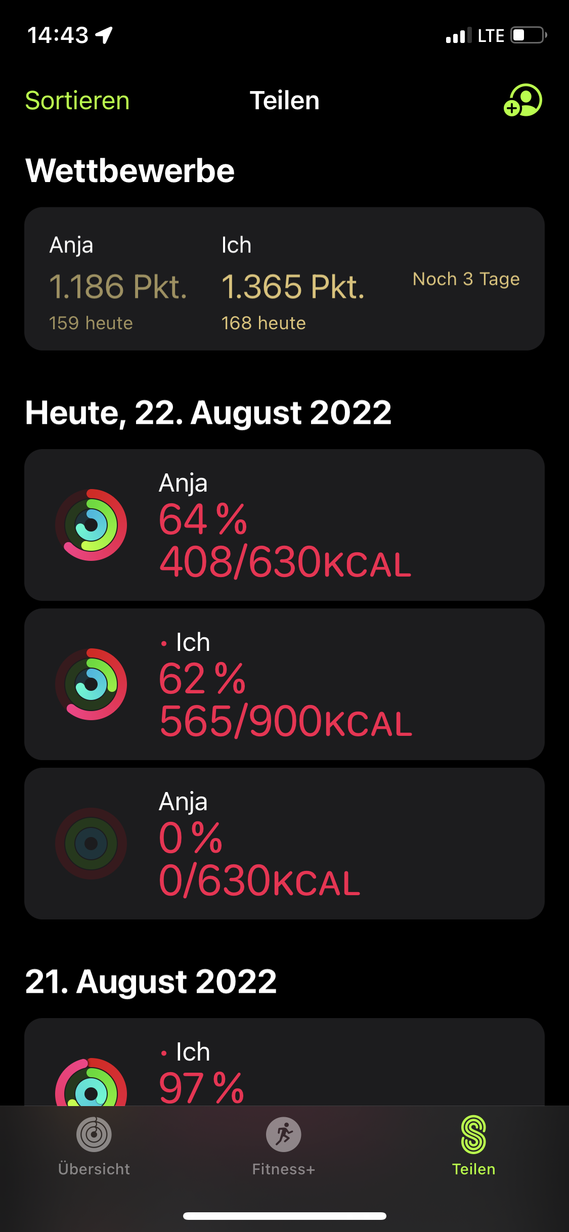 Die eingeladene Person erscheint in der Fitness App nach zwei oder drei Tagen doppelt