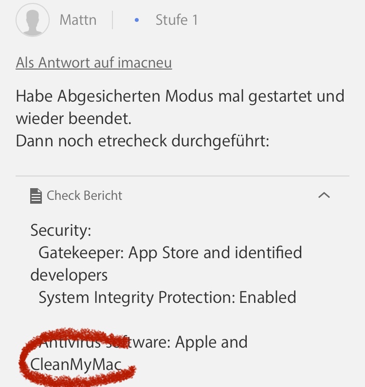 Nach dem Neustart bekomme ich den Fehlerbericht.