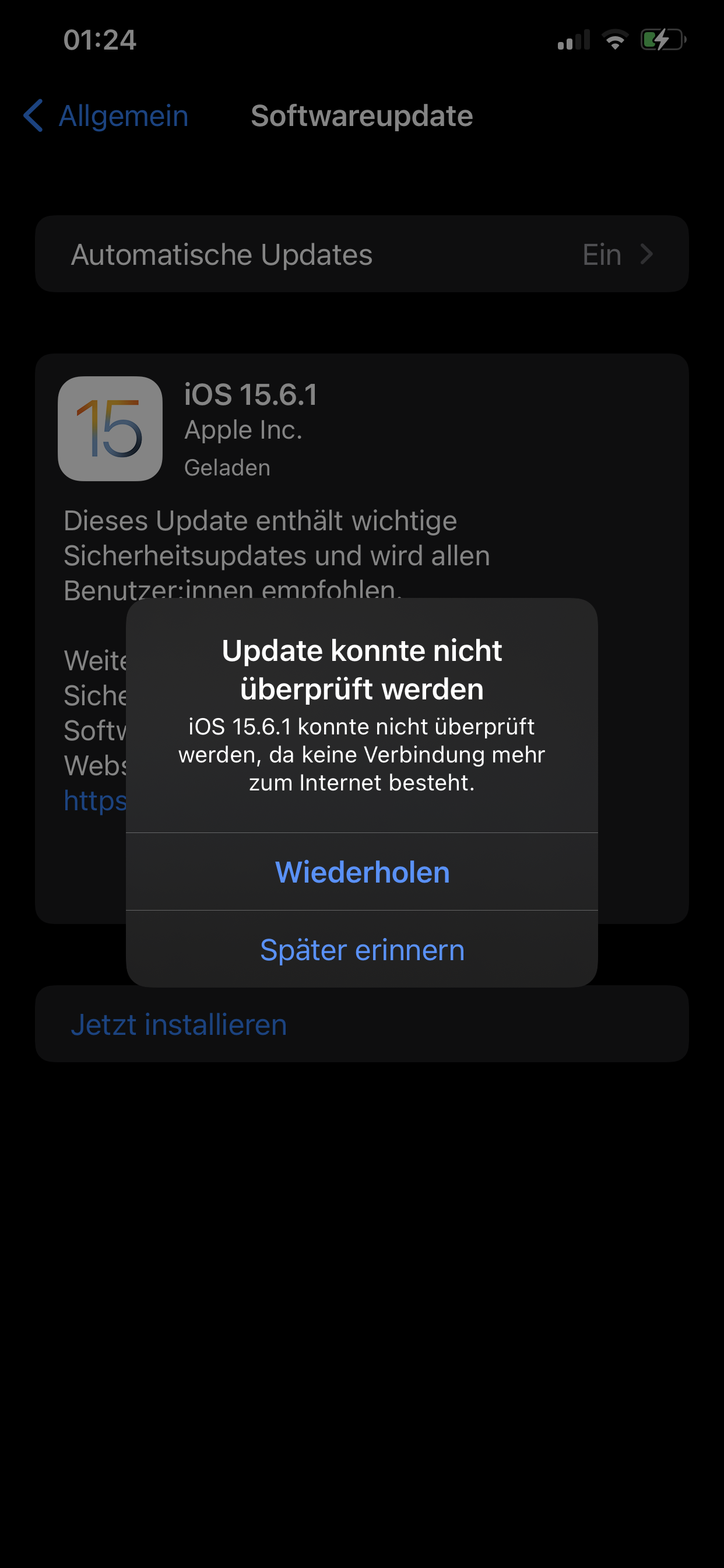 Ich möchte auf meinem iPhone 11 Pro Max das neue Update machen. Es zeigt mir jedes mal an,das keine Internetverbindung besteht obwohl diese Top ist.