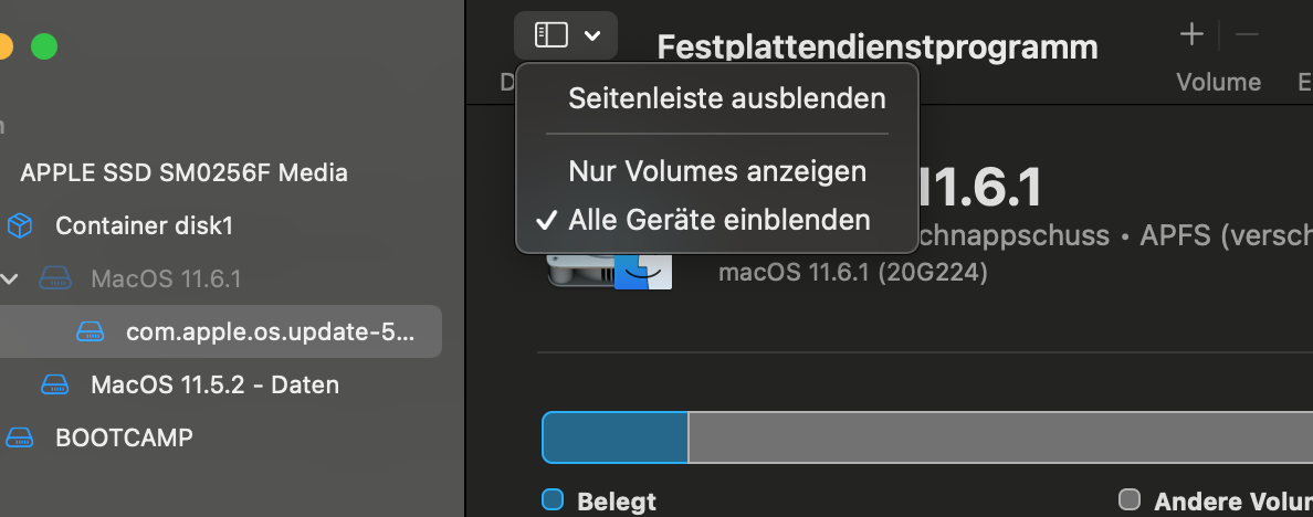 Während der Installationsroutine solltest du dann das Festplattendienstprogramm starten und die SSD, das Startlaufwerk, komplett löschen --> APSF GUID-Partitionstabelle (eine womöglich vorhandene Boot Camp-Partiton könntest du unverändert beibehalten – der passiert nichts); dann Festplattendienstprogramm beenden und die Installation von Monterey fortsetzen.