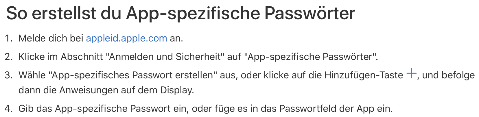 In den iCloud-Einstellungen finde ich diese Variante nicht. Mein generelles iCloud-Passwort möchte ich nicht verwenden!