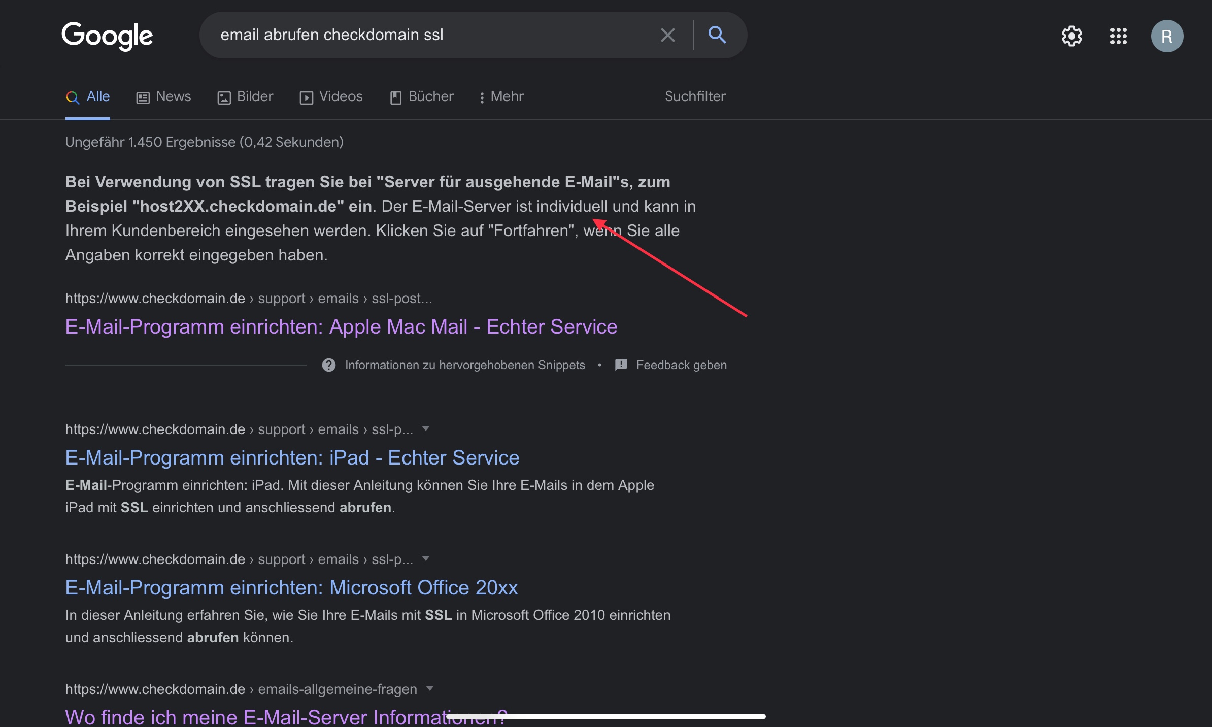 ich habe heute meine vierte Mailadresse bei euch checkdomain und wollte diesen neuen Account soeben auch bei Apple Mail hinzufügen.