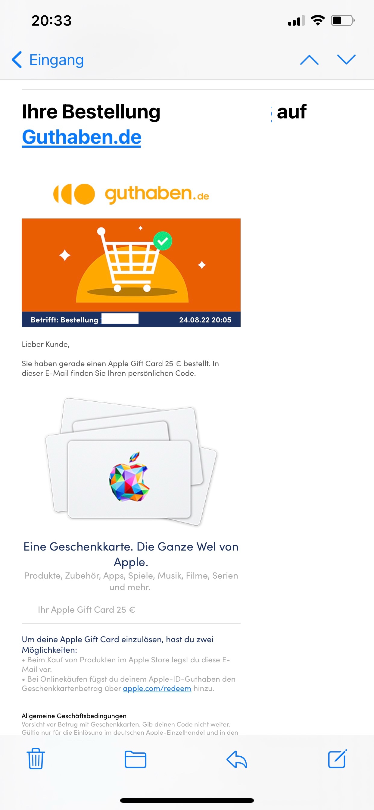 Was kann ich tun wenn ich eine Apple Gift Card von Guthaben.de gekauft habe aber diese nicht einlösen kann (dieser Code muss in deutschen Store eingelöst werden) ich habe oft bei Guthaben.de bestellt und konnte problemlos einlösen.