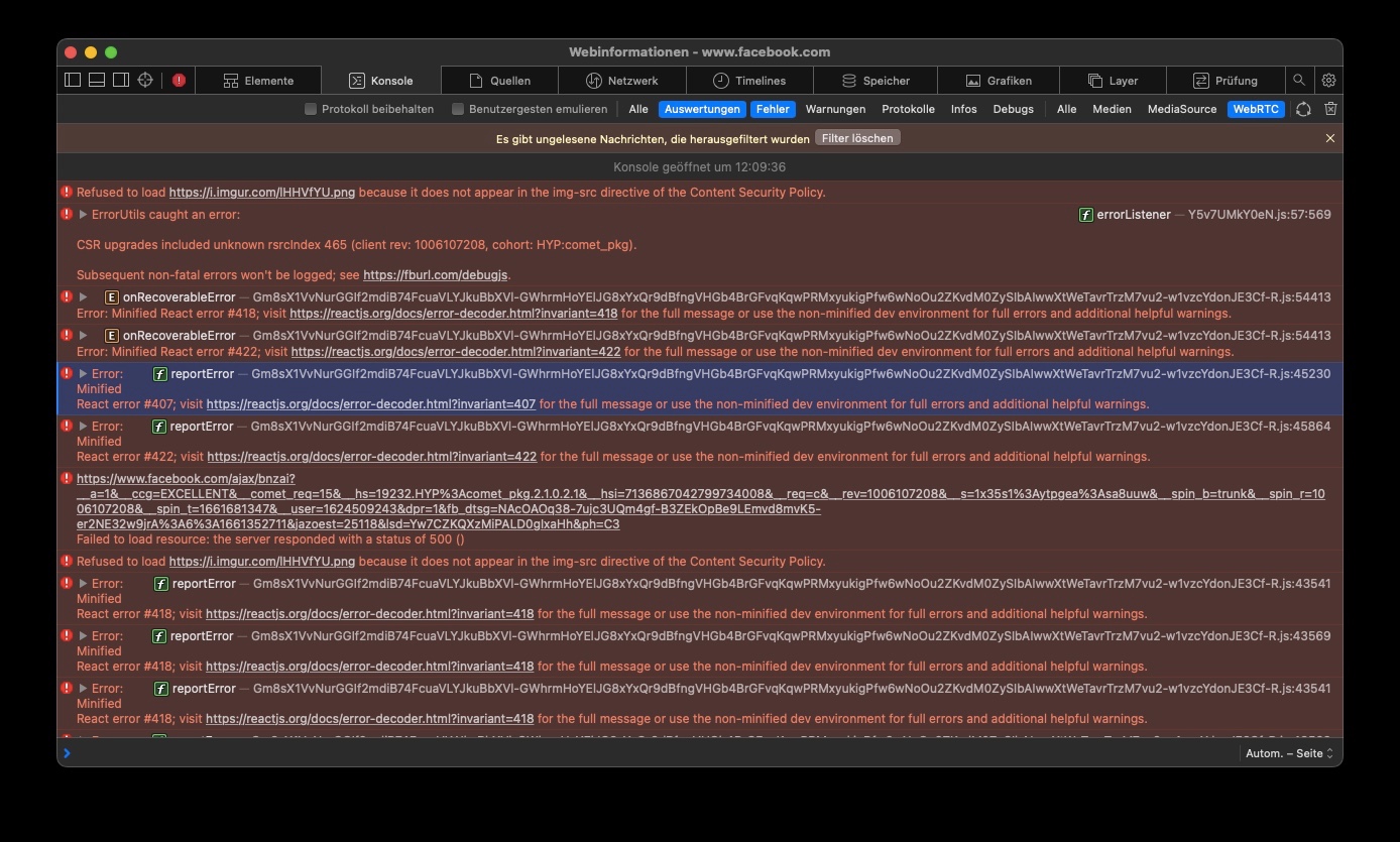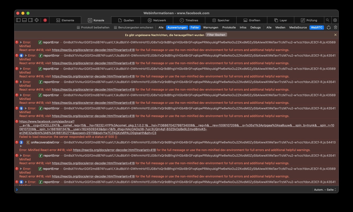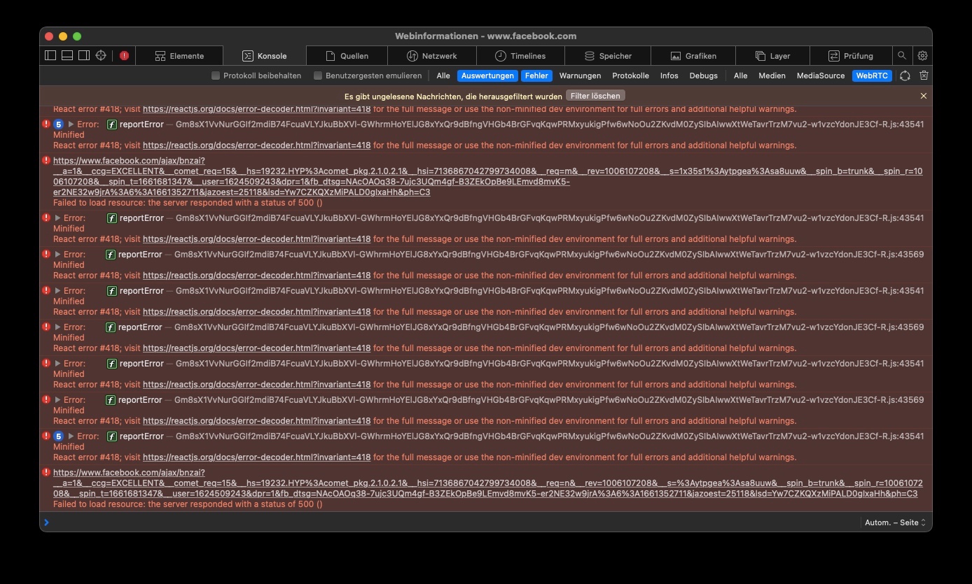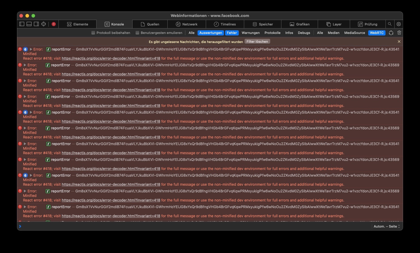 Ich empfand WebRTC immer als unsicher. Deshalb hatte ich es dauerhaft deaktiviert und Facebook lief trotzdem immer. Nun hat anscheinend Facebook was geändert.