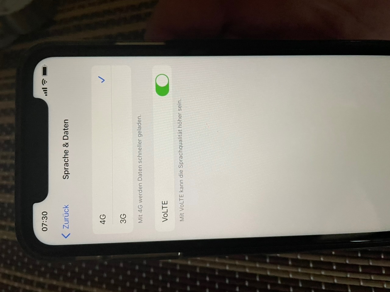 fertige bitte einen Screenshot „Sprache g Daten, zu finden bei „Einstellungen - Mobilfunk - Datenoptionen - Sprache & Daten“, danke. Welchen Netzbetreiber nutzt Du, welche Varianten bietet er an?