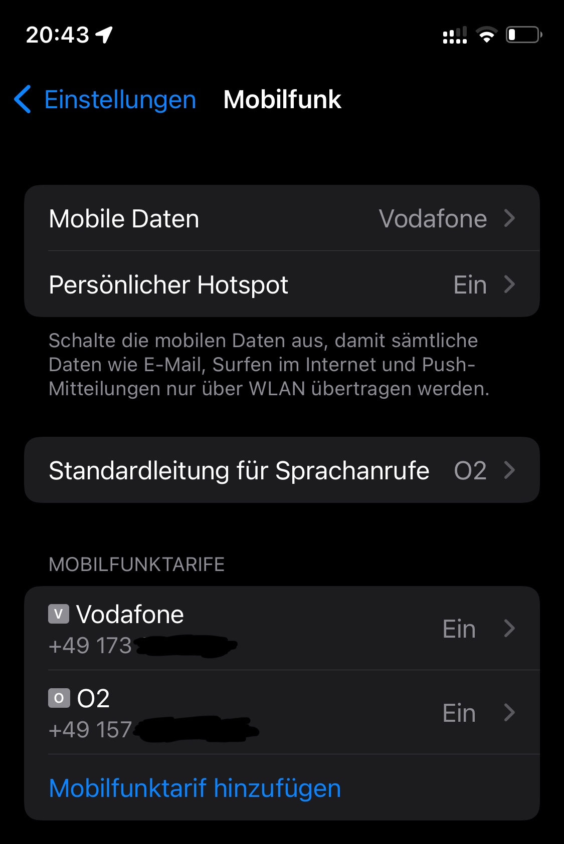 Und mit beiden konnte ich telefonieren und mobile Daten nutzen (sowohl Vodafone/physische wie auch O2/eSIM).