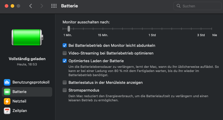 Mit Batterientools, wie zB 👉 coconutBattery kannst du dein Akku überwachen und sehen, ob und wie er gerade geladen wird.