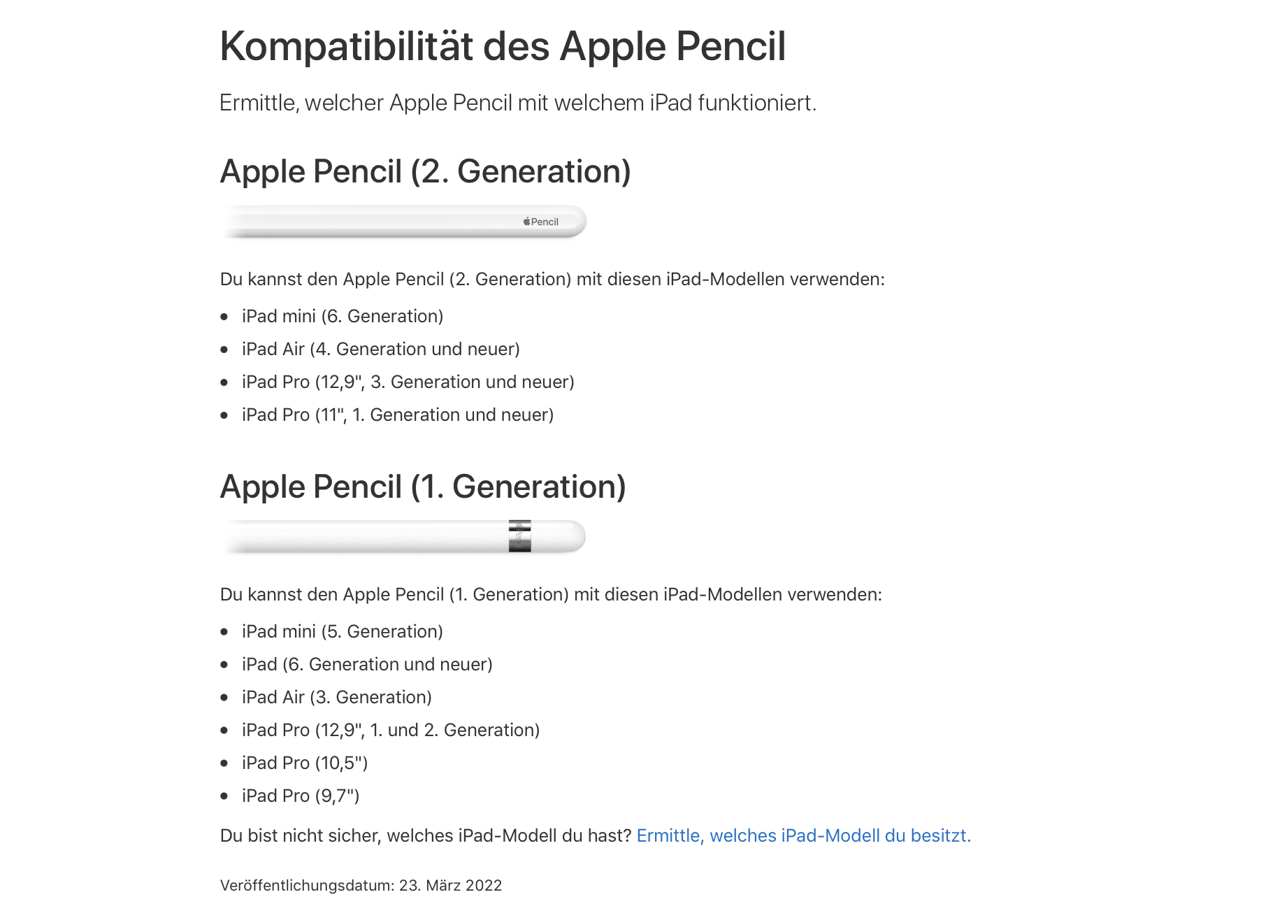 Kompatibilität des Apple Pencil - Apple Support (DE)
