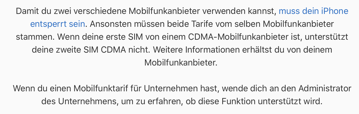 SMS und iMessage können nicht über zweite SIM-Karte verschickt werden