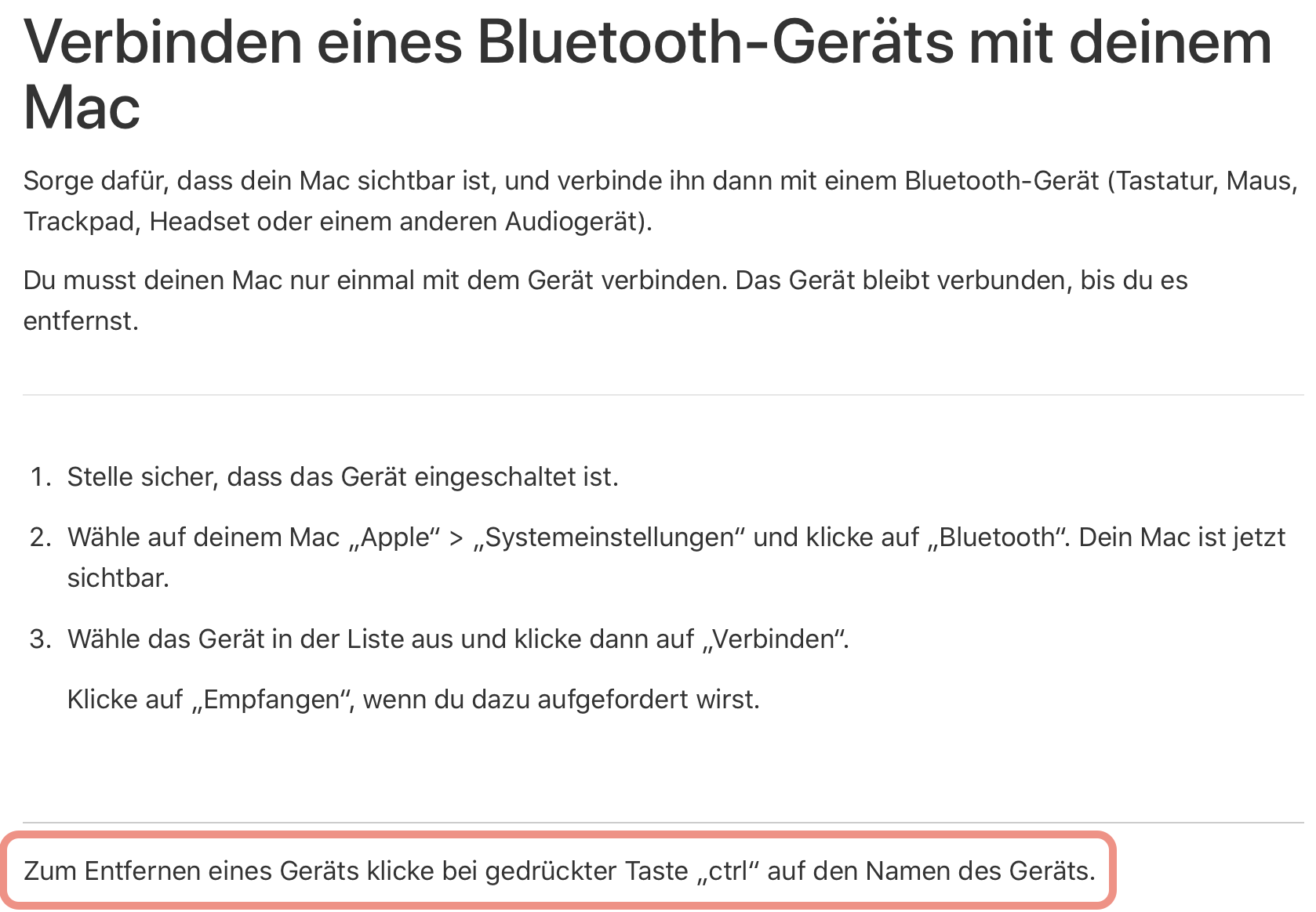 Wahrscheinlich sollte ich Bluetooth trennen und neu einrichten.