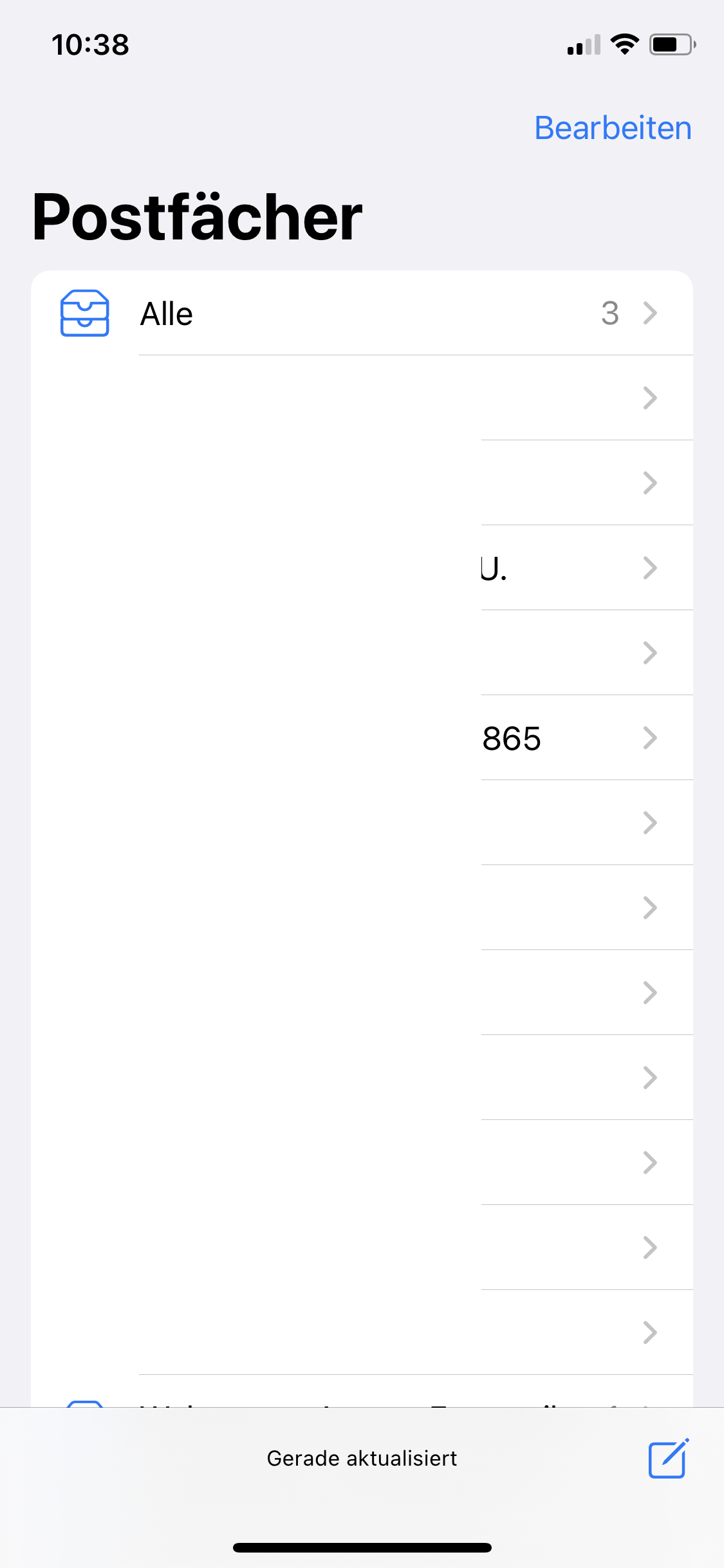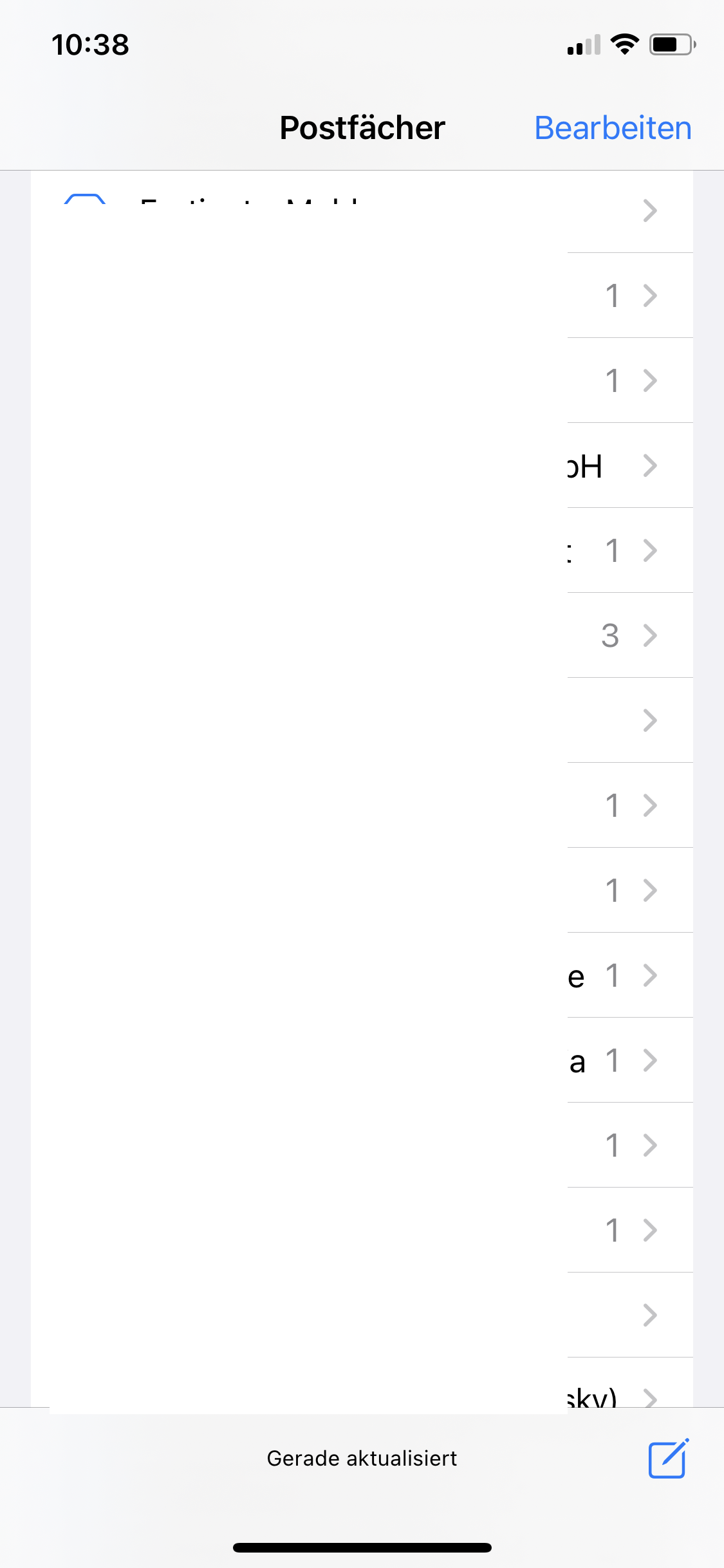 Mein iOS-Mail zeigt die ungelesenen Mails falsch an. Es zeigt, dass es 3 ungelesene Mails gibt, aber es gibt insgesamt 12 ungelesene Mails, verteilt auf 10 E-Mail-Konten (9 x je 1 ungelesenes Mail, 1 x 3 ungelesene Mails)